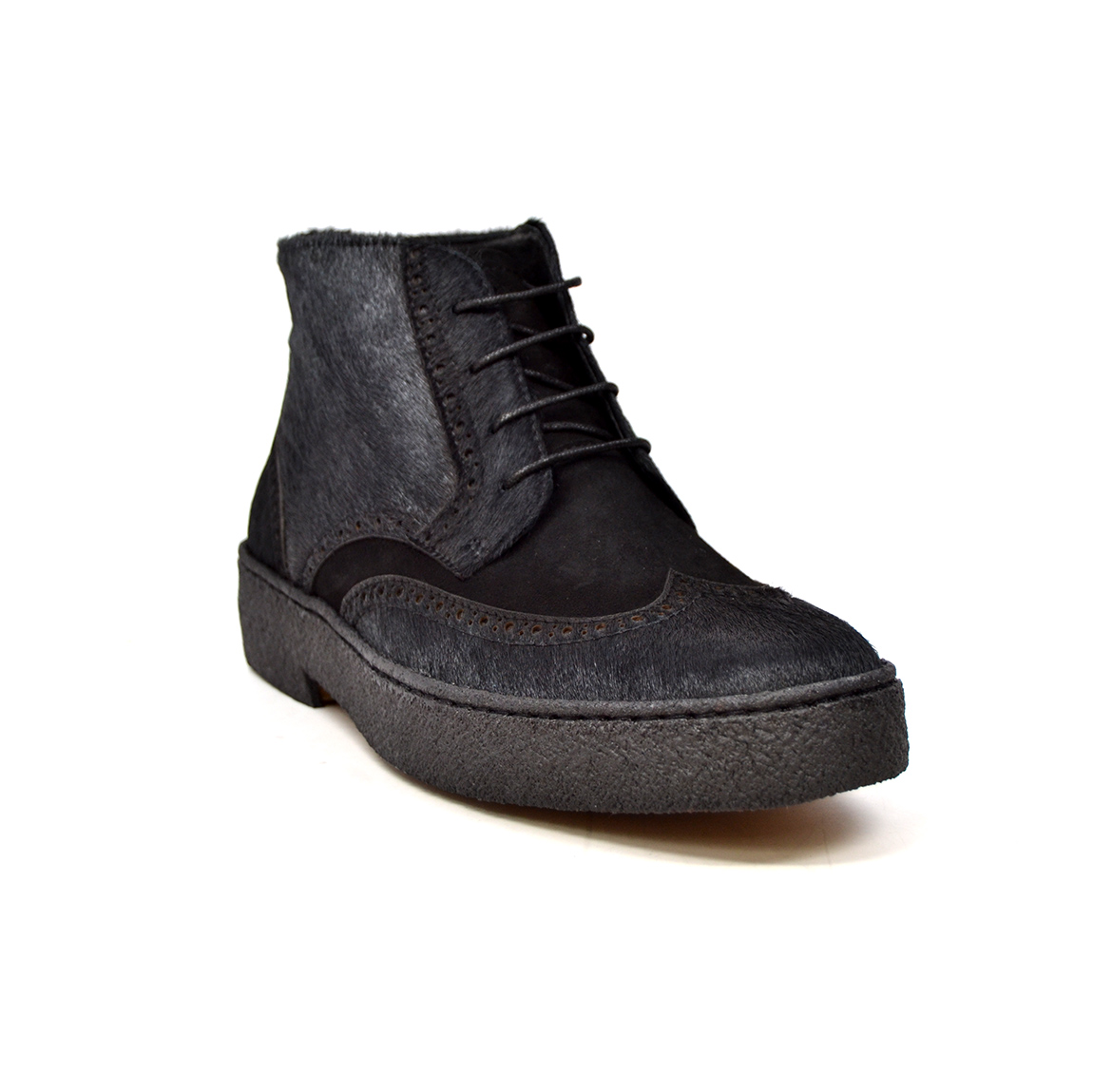This Playboy wingtip high top lace-up leather and pony skin is a style to crave for and it's sleek combination is a dress to impress experience. This British Collection design is an original one of kind genuine pony skin shoe to make you stylish and comfortable for your casual look.